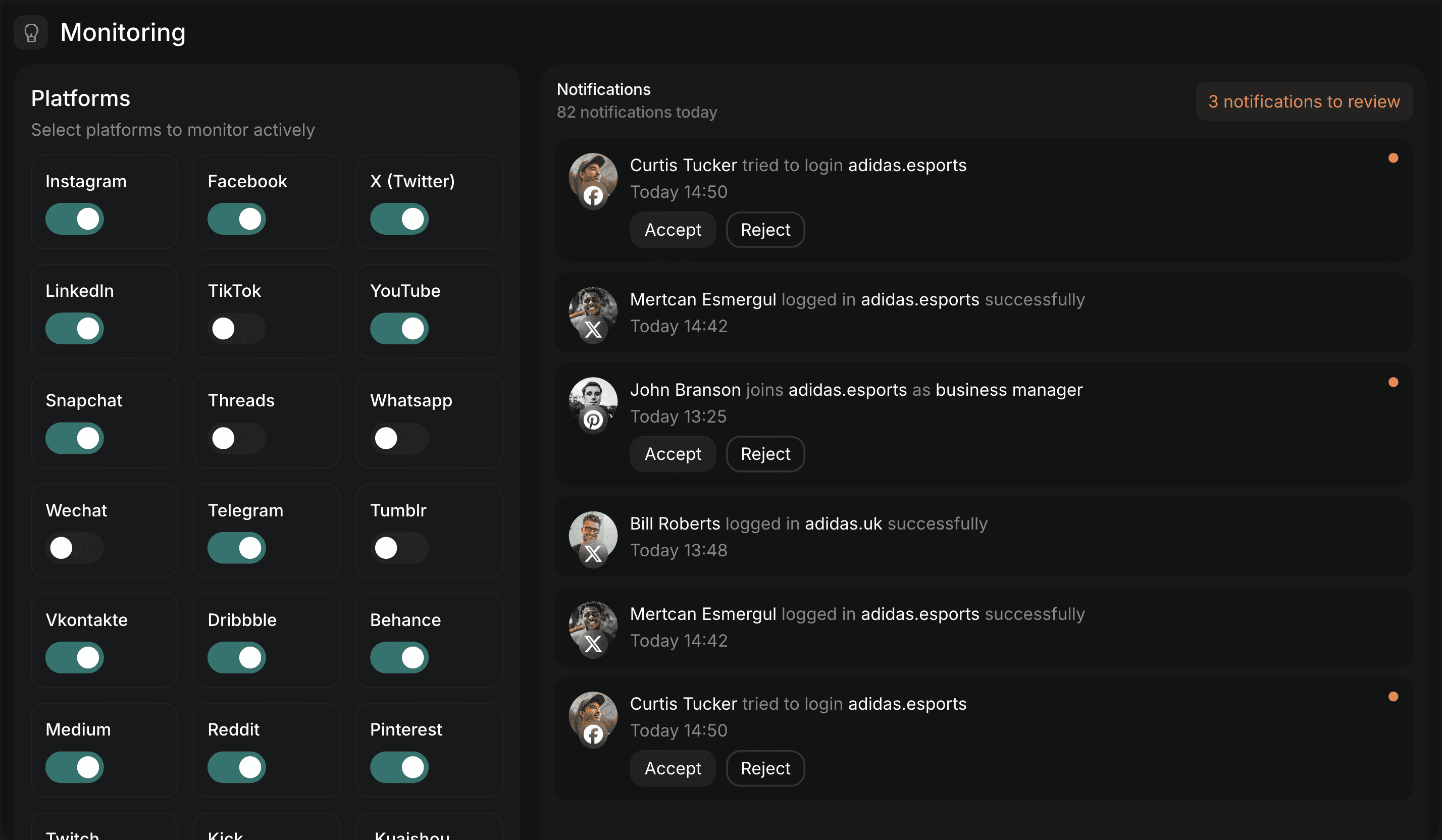 Protect your brand from impersonation, fraud, and unauthorized account activity online.